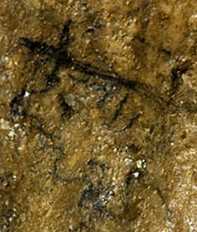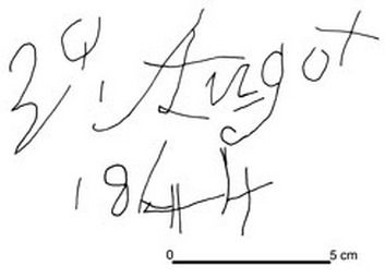 | Graffito d’un certain Angot venu visiter la grotte en 1844 |