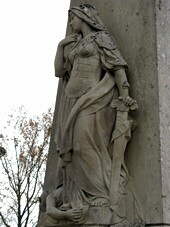 | Un musée d’art funéraireSi les monuments érigés à des dates récentes répondent bien souvent à des modèles stéréotypés, il n’en est pas de même pour les tombeaux plus anciens qui témoignent de la vitalité de l’art funéraire au XIXème siècle. Ainsi est-il possible de découvrir dans les allées de Vaufleury nombre de petits chefs d’œuvre représentatifs de ce courant dynamique. De la stèle sculptée à l’image d’une pleureuse comme celle de Léopold Ridel, en passant par le sarcophage ou les colonnes ornées d’urnes cinéraires* de la famille Souchu-Servinière, quelques monuments adoptent un style propre à rappeler des références antiques. En parallèle, se développe également un mouvement historicisant caractérisé par l’élévation de chapelles funéraires inspirées des cathédrales du moyen-âge. Certaines reçoivent un décor élaboré de motifs historiés ou de chapiteaux sculptés dignes de pouvoir figurer dans n’importe quelle édifice roman ou gothique. Les gisants sont par contre totalement absents du site, à l’exception du remarquable tombeau du petit Paul-Marie Batard, représenté en sommeil sous la forme d’une émouvante statue de marbre blanc. |