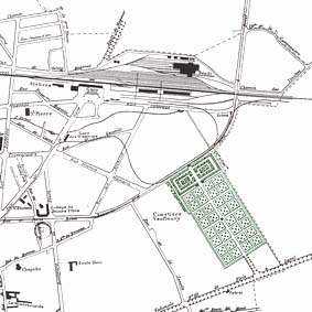 Genèse des cimetières lavalloisDes fouilles archéologiques ont permis de déterminer l’existence de sépultures datant de l’époque mérovingienne sur des sites lavallois (Pritz, les Merceries). Par la suite, au moyen-âge, les cimetières accompagnent le développement urbain et s’organisent autour des grands centres paroissiaux. Laval compte alors cinq cimetières principaux comme celui de la Trinité situé rue des Fossés ou celui de Saint Vénérand au chevet de l’église du même nom. Ces derniers seront fermés pendant la Révolution, les morts étant inhumés sans cérémonie dans une fosse commune ouverte sur les landes de la Croix-Bataille. Au XIXème siècle, en réponse au décret de Napoléon, on décide la création d’un unique cimetière situé en périphérie de la ville. Les autorités municipales choisissent le site de la Guettière (à l’emplacement actuel des archives départementales) qui est ouvert aux inhumations à partir de 1807. Néanmoins, face aux problèmes d’exiguïté du lieu ainsi que de la nature argileuse du terrain qui ne favorise pas la décomposition rapide des corps, il est abandonné en 1882 au profit d’un site disant de quelques centaines de mètres : Vaufleury. Plus vaste que son prédécesseur, ce nouveau cimetière se développe sur un espace de 7,5 hectares dont les limites sont matérialisées par les routes de Paris et du Mans. |