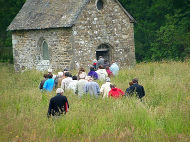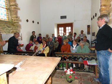 Un temps gris et frais n’a pas empêché que tout se déroule comme d’habitude c’est-à-dire avec autant de passion que de bonne humeur sous la houlette de Marielle Campagne, de Sébastien Garnier, d’Alain Chalaux et de Jean-Luc Bouttier-Lochu. L’après-midi a débuté au Point lecture de Châtillon par une courte information autour de l’exposition des chapelles et déjà le public réagit par des questions et des anecdotes. Cet échange s’est prolongé tout au long des visites qui ont suivi : le Grattoir, les Frênes, Fontaine-Géhart et enfin le Hec. Alors que nous avions commencé la journée dès le matin par quelques inventaires de fontaines et de croix sur Mézangers, nous n’avons pas pu résister à la prolonger en poussant jusqu’à Gorron afin d’admirer d’autres trésors… mais ceci est une autre histoire ! Chaque fois que nous nous rendons à Châtillon de nouvelles découvertes nous attendent dans une ambiance chaleureuse. Alors à bientôt Châtillon.