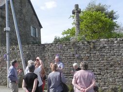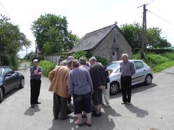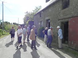 Puis notre groupe s’est rendu à l’Hôtellerie, qui nous a offert l’occasion d’observer la relation entre une voie antique et le chemin médiéval. La rencontre de ces deux routes a déterminé un conflit d’orientations dans le bâti du hameau. Le chemin montais emprunte la voie romaine sur une courte distance, juste ce qu’il faut pour traverser l’Aron, puis la quitte pour rencontrer d’autres segments de voiries anciennes, dans un secteur agricole constamment occupé depuis l’Antiquité. |