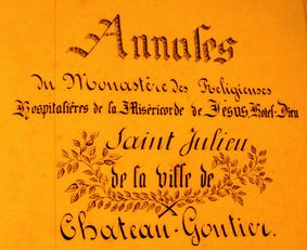 Marguerite de Lorraine, veuve de René de Valois, seigneur de Château-Gontier, visite la ville en 1507, elle reçoit différentes plaintes concernant la gestion de l’hospice, les confrères n’assurent plus ou n’ont plus les moyens de poursuivre leur mission près des pauvres. La Maison Dieu est réorganisée avec l’accord de François de Rohan, Évêque d’Angers. Il est fait appel à 6 religieuses de la congrégation des Franciscaines au lieu des 12 prévues initialement pour assurer le service de l’hospice. Elles s’installent rue d’Audibon et ne tardent pas à demander la clôture. La rédaction d’une nouvelle règle est décidée, Gabriel Maria est chargé de son élaboration. Les Franciscaines sont entreprenantes, elles développent les constructions rue d’Audibon, organisent un jardin conventuel, la pratique rigoureuse de la règle reçoit un accueil populaire, une cinquantaine de professes sont accueillies à la communauté naissante. Les habitants ne tardent pas à s’inquiéter de la progression des effectifs et de la gestion de la Maison Dieu. Les comptes sont déficitaires, bien que la communauté en assure le financement. Une procédure judiciaire est engagée, et sur ordre de l’avocat du roi, l’effectif des religieuses est ramené à 6 par le protocole de 1560, en fait, elles restent à 9.