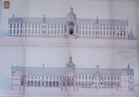 Un dessin datant de 1670, montre l’emplacement de la construction, ce plan est repris sous une autre forme par R. Gauchet qui montre l’organisation des locaux qui seront démolis à la fin du 18ème. Les Pères des Pauvres, élus par les représentants de la ville, sont devenus les premiers Administrateurs civils le 29 avril 1613, ils sont trois et ils se répartissent la tâche et s’acquittent, pour un temps, de cette mission avec beaucoup de compétence. Le premier constat, c’est le délabrement de la Maison Dieu, elle a été démolie sur ordre de Boisdauphin, des parties ont été reconstruites ou réaménagées et la première mission consiste donc à préparer et mettre en œuvre la reconstruction des édifices, c’est à François Allaire que revient la charge des bâtiments et de leur gestion financière en dépenses et recettes.
