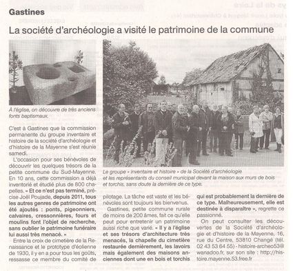 Le groupe d’inventaire du patrimoine s’est réuni comme il a coutume de le faire dans une commune de notre département. Il a été accueilli à Gastines le samedi 13 octobre 2012 par Mme Élisabeth Jeandel, adjointe au maire.