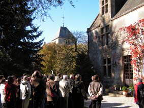 Un petit parcours pédestre dans le bourg nous a conduit successivement :A la Grand’ Maison : le bel édifice du XV ème remanié au XIX ème siècle, niché dans son splendide parc a permis au plus grand nombre de découvrir un « mur d’abeilles ».Au Cruchet : petit manoir dont la restauration commencée il y a 30 ans est un bel exemple de réussite.