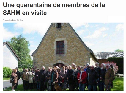 | Dimanche 11 mai 2014 : Bourg-le-Roi (Sarthe) » C’est une quarantaine de membres de la Société d’Archéologie et d’Histoire de la Mayenne (SAHM) qui a déambulé entre deux averses dans les rues de Bourg-Le-Roi dimanche. De 10h à midi, ils étaient guidés par Philippe Martin, le maire de la commune. » Laurence Petit-Voisin : Correspondante Ouest FranceLa commune de Bourg-le-Roi de 341 habitants a la particularité d’être une des plus petites de France puisque son étendue s’arrête à ses fortifications.Comptes-rendus : Monique Guéguen, Photos : Bertrand Béranger et Joël Poujade |