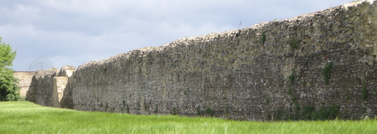 | Une grande partie des remparts restaurés autour des années 2000 sur une durée de 11 ans par des chantiers d’insertion ceignent encore presque entièrement le bourg. 43 bénévoles de la commune y ont aussi participé. L’enceinte a une longueur de 600 m. L’épaisseur était généralement de 2 m 20 à 2 m 40 à la base 1 et 1 m 20 au niveau du chemin de ronde. Avec leurs larges fossés extérieurs aujourd’hui comblés mais confirmés par l’archéologie, ils ont une datation qui s’étage de 1175 à 1250, ce qui permet d’en attribuer l’édification principale à Richard, puis Raoul de Beaumont, vicomtes du Maine.Deux portes subsistent. La porte Sainte-Anne, devenue Saint-Mathurin à la suite de la construction d’une chapelle qui la jouxte. Celle-ci a été remaniée en 1842 et 1879 et garde son arcade ogivale. La porte Saint-Rémy, située au nord-est, est la plus proche du centre du bourg, fait actuellement 7 m de hauteur et conserve son accès au chemin de ronde. La porte présente encore son système de fermeture et les assommoirs.La trace la plus ancienne du bourg médiéval est sa voirie typique des plans d’urbanisme quadrangulaires à l’intérieur d’enceintes fortifiées : trois rues parallèles reliées par un grand nombre de venelles perpendiculaires. Les maisons les plus anciennes sont accolées dans un parcellaire conservés de bandes longitudinales. |