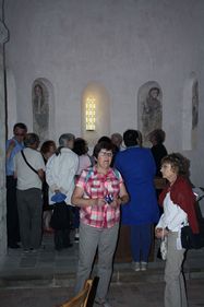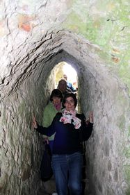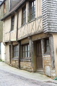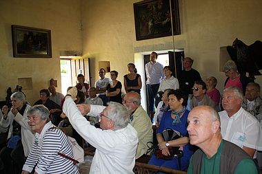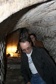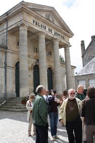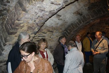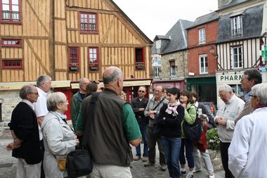 | Une déambulation dans la ville a permis de se rendre compte du nombre élevé d’anciennes maisons à pans de bois et de l’effort de réhabilitation entamé. Les plus anciennes sont des 14éme et 15éme. La plus souvent, elles s’avancent en encorbellement et quelques unes possèdent un soubassement en bois. nous avons ainsi découvert la place saint Julien, la grande rue, la rue du docteur Barrabe. D’élégants hôtels particuliers, comme celui de la famille Marie du Rocher, furent construits au 17éme essentiellement par des officiers royaux. Dans une maison du 16e siècle nous avons eu le privilège, grâce à Mme et à M. Le Bigot, d’accéder aux caves communément désignées sous le nom de « prison des anglais ». | ||||||||