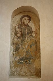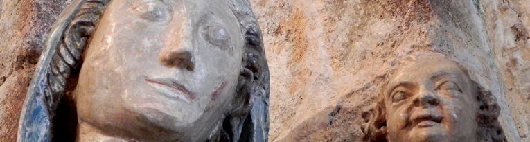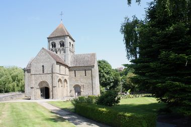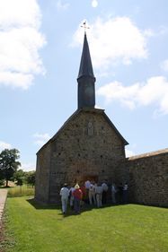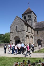 Disparus les bas-côtés avec leur maçonnerie en arêtes de poisson, les chapelles aménagées dans les arcades latérales avec leurs autels de St Nicolas, Ste Anne, St Denis, St Michel, St Pierre, St Yves et St Roch. La couverture de la nef était en tuiles. L’édifice dans son état actuel est un bel exemple d’art roman avec ses contreforts plats, son chœur en cul de four et ses absidioles à modillons sculptés. Le massif triangulaire de l’autel rappelle celui de Fontaine-Géart. Les peintures murales du 12e et les repeints du 15e siècle ont été déposées et présentées dans les absides. Une très belle Vierge à l’Enfant du 14e siècle en pierre polychrome est adossée à un pilier et on peut être surpris par le visage caricatural d’adulte de l’Enfant-Jésus qui contraste avec celui de la Vierge dont les traits sont minimalistes. Outre de très belles baies géminées, le pignon nord est orné d’une statue dont la légende comme la description offrent leur lot d’interrogations. La visite de ce lieu d’exception ne serait pas complète sans un regard au gisant attribué à Pierre Ledin de la Chaslerie (1601) ce qui peut paraître curieux étant donné le modèle de l’armure et la datation de la seconde moitié du 15e siècle donnée par d’autres sources. Les dalles funéraires qui couvraient le sol de l’église (tout au moins celles qui ont échappé à la destruction) se partagent l’intérieur de l’église et les alentours de la croix de placître. Peut-être trouveront-elles un jour un lieu plus adapté avant d’être complètement illisibles. Cette splendide construction mériterait également une étude complète afin de lever les à-peu-près et les incertitudes qui accompagnent son histoire. Sources : le Domfrontais Médiéval N° 6, Gilles SUSONG |