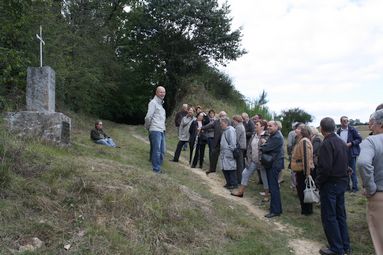 | Dans le cadre du lancement officiel de la dernière publication de la SAHM consacrée à la riche histoire d’Entrammes, une soixantaine d’adhérents, auxquels s’étaient joint quelques locaux, ont suivi Stéphane Hiland lors de l’évocation, sur sites, de quatre événements majeurs s’étant déroulés sur le territoire de la commune.