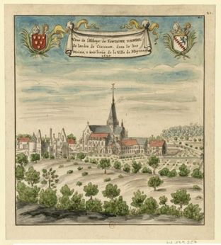 | Fig. 3 Gravure de l’abbaye de Fontaine-Daniel tirée de la collection Gaignières. (Crédits : BNF) |