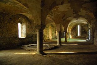 | Fig. 4 Réfectoire de l’abbaye de Clairmont. L’austérité, principe cher aux Cisterciens, s’y remarque au premier coup d’œil (Crédits : site de l’Association des Amis de l’Abbaye de Clermont) |