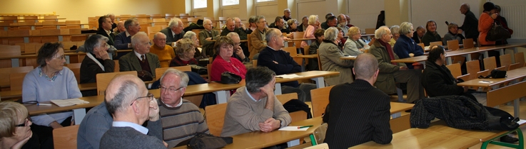 | A cet hommage rendu à Roger Bouillon, associons également celui rendu par la Ville de Laval à Michel Denis, notre ancien président d’honneur décédé en 2007. Les élus de la nouvelle municipalité ont bien voulu célébrer la mémoire de cet éminent historien de la Mayenne, à qui notre département doit beaucoup pour ses travaux de recherche dont le point culminant fût la publication de sa thèse intitulée « Les royalistes de la Mayenne et le monde moderne ». Le 26 septembre dernier, en présence de Mme Denis et de Guillaume Garot député-maire de Laval, une plaque de rue au nom de celui qui contribua et encouragea pendant des années l’action conduite par notre société a été dévoilée dans le quartier de Thévalles. La cérémonie a constitué l’occasion pour Jacques Salbert, au cours d’un discours rendant hommage à ses qualités de chercheur, de rappeler également les talents de visionnaire d’un homme conscient des changements radicaux engendrés par notre société actuelle. Citons pour mémoire, quelques extraits de la conférence qu’il donna devant cette assistance il y a maintenant 8 ans : « Le problème c’est de rétablir le lien, non seulement chez les décideurs mais aussi chez les simples citoyens, entre leur présent, le passé qui n’est pas forcément le leur, qui n’est pas forcément celui de leurs ancêtres, mais le passé du milieu dans lequel ils vivent et dont ils sont momentanément les héritiers quel que soit leur lieu de naissance, et tout cela pour construire un avenir. » Il surenchérissait alors sur le rôle à tenir par des sociétés savantes telles que la nôtre en affirmant, non sans humour mais avec réalisme, « au lieu de nous réunir dans un amphithéâtre, en association de bonne compagnie, cela suppose que nous retournions complètement nos ambitions parce que si ce n’est pas fait c’est trop tard… ».
