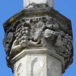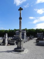 La sculpture du socle de la croix illustre la Résurrection des morts et la citation figurant à l’entrée du cimetière : tubam expectant / ils attendent la trompette [pour ressusciter].