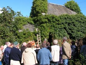 Nouvelle pose au cimetière qui retient l’attention par la présence d’une croix cémétériale de 1778 bien connue d’Alain Guéguen et des tombes de deux « voyants » de Pontmain : Eugène Barbedette et Françoise Richer.