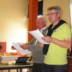 Un intermède au château d’eau pour l’apéritif et nous nous retrouvons devant une table bien garnie. Le repas est ponctué par les anecdotes de M. Racinais, un duo sous forme de chanson historico-humoristique ainsi qu’une projection sur la commune et les activités de l’association.