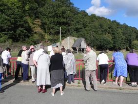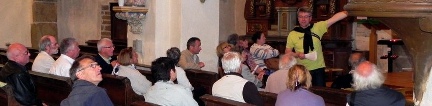 C’est donc devant la salle communale et par une belle mais fraîche matinée qu’une trentaine d’adhérents se sont retrouvés. La qualité de l’accueil est une habitude dans cette dynamique association ; son président, M. Racinais et M. Garnier, secrétaire, nous reçoivent en compagnie de Mme Campagne, bien connue des membres du réseau d’inventaire du petit patrimoine. Le temps de « caler » le matériel informatique avec M. Plai, « web master » du site et nous nous dirigeons vers la chapelle du Frêne.