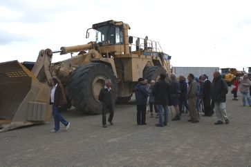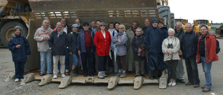 Xavier VÉRITÉ, géologue à cette carrière, au cours de la montée au sommet de la carrière vers le belvédère, nous a parlé de l’entreprise actuelle et présenté les différentes pierres que l’on y exploite ainsi que le matériel récent.