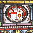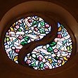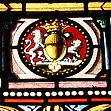 l’Annonciation de la Vierge avec les armes des Lantivy, de gueules à l’épée d’argent en pal, pointe en bas, et de la Chevalerie de gueules au cheval cabré d’argent.,