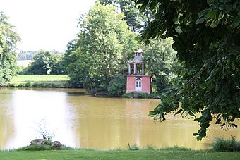 En accord avec le romantisme du 19ème siècle, de grandes perspectives encadrent le paysage alors que de petites percées relient les grandes allées et les petites clairières avec bancs. Plus le regard s’éloigne du logis, plus il est confronté avec un décor champêtre, avec une nature de moins en moins domestiquée.Chaque secteur est un tableau qui s’articule autour d’un pont, d’une pagode ou d’une fausse ruine. Il ne manque plus que les statues en terre cuite qui ont disparues.