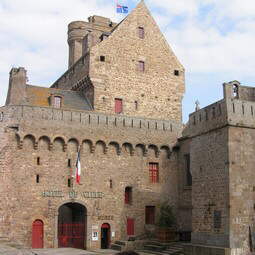 A l’extrémité de l’isthme reliant la cité malouine au continent, au sud-ouest des remparts de la ville, un premier donjon est édifié en 1393. En 1424, Jean V de Bretagne complète cette tour d’angle en édifiant à proximité un château, dont Anne de Bretagne parachève le dispositif défensif à la fin du 15ème siècle par la construction de la tour Quic-en-Groigne, ainsi nommée car élevée contre la volonté des Malouins. Vauban intervient ensuite en 1690 pour moderniser le monument, qu’il rend imprenable côté continent, en même temps qu’il travaille à entourer la ville de forts (le petit Bé, la Conche…) visant à briser toute tentative d’invasion par mer. Aujourd’hui, cet ouvrage témoignant de l’évolution de l’architecture militaire accueille les locaux de l’hôtel de Ville de Saint-Malo.