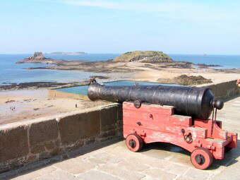Siège d’un établissement religieux depuis l’installation au 6ème siècle de l’ermite Maclow, le rocher dit de Calnach devient à partir du 12ème siècle le théâtre du développement d’une entité urbaine appelée à devenir la cité fortifiée que nous connaissons aujourd’hui. Coincée entre des grèves qui l’isolent du continent et servent au mouillage des bateaux et la mer qui incarne à la fois les bienfaits dus au commerce et les dangers inhérents au passage fréquent de flottes anglaises, Saint-Malo va voir grandir en son sein des hommes illustres à l’esprit farouchement indépendant. De Jacques Cartier, « découvreur » du Canada, en passant par Duguay-Trouin et Robert Surcouf, figure légendaire de l’épopée corsaire, nombreux sont ceux qui ont participé à l’essor économique de la cité malouine, sans compter les puissants armateurs de la compagnie des Indes qui, au 18ème siècle, achèveront de coloniser l’espace intra-muros par la construction d’élégants hôtels particuliers. Néanmoins, une partie importante de ce patrimoine demeure aujourd’hui le fruit d’une reconstruction entreprise à l’issue du sinistre causée par les bombardements destructeurs de la fin de la seconde guerre mondiale.