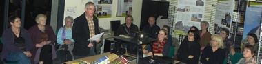 Après que ce dernier ait fait une visite commentée de l’exposition, D. Rousseau a présenté en image le résultat de ses recherches sur les chapelles d’Entrammes et a su communiquer sa passion à un public attentif.