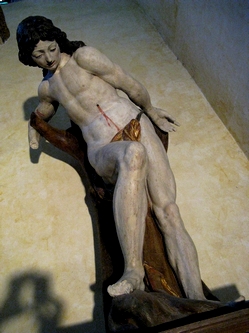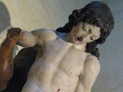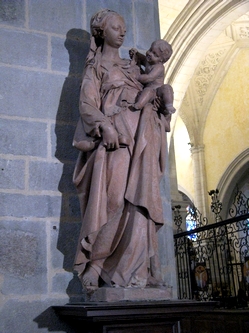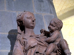 Depuis février de cette année, les fidèles ou les simples visiteurs de l’église Saint-Vénérand peuvent de nouveau admirer quatre de ses chefs-d’œuvre : le tableau de l’Annonciation et les statues de Saint-Vénérand, Saint-Sébastien et Notre-Dame de Bonne-Encontre. Le tableau de l’Annonciation Dans cette huile sur toile peinte en 1618 pour l’église Saint-Vénérand ou le couvent des dominicains voisin, le peintre Jean Boucher de Bourges (1575-1633) a représenté un des thèmes plastiques les plus souvent traités par la peinture religieuse : l’annonce faite à Marie par l’ange Gabriel de sa maternité future. Jean Boucher y renouvelle cependant les caractères traditionnels. Assise, la Bible sur les genoux, la Vierge n’offre plus un visage humblement baissé. Elle lève les yeux vers le Saint-Esprit représenté sous la forme d’une colombe surgissant d’un faisceau de rayons lumineux. L’ange Gabriel se tient agenouillé, les yeux baissés, levant la main vers sa bouche dans une attitude de salut. Pourtant, comme chez ses contemporains, le symbolisme reste présent dans l’œuvre de Jean Boucher. Ainsi, les fleurs de lys contenues dans le vase, évoquent, en raison de leur blancheur, la virginité de Marie. Restaurée dans les années 1980 pour être exposée à Bourges, la toile vient de faire l’objet d’une nouvelle restauration par Catherine Ruel et Kiriaki Tsesmeloglou, restauratrices d’œuvres peintes à Nantes. Le tableau qui présentait de nombreuses altérations parmi lesquelles des déchirures et des boursouflures vient donc de retrouver la vivacité de ses couleurs et sa majestueuse beauté. Le cadre qui lui sert d’écrin a été réalisé par la menuiserie Coutard de Laval. Sa dorure à la feuille a été exécutée par le peintre en décor lavallois, Daniel Thirault. Les statues de Saint-Vénérand et Saint-Sébastien En terre cuite peinte, elle sont attribuées à Pierre Biardeau (1608-1671), l’un des illustres représentants de la sculpture du Maine au XVIIe siècle. Elles ornaient autrefois le retable du maître-autel construit en 1639 et transporté après la Révolution dans l’église de Brée. Saint-Vénérand, martyr légendaire dont le comte Guy XVI de Laval avait promis une relique à la paroisse nouvellement créée, est représenté vêtu d’une tunique, la tête entre les mains (il fut décapité). Saint Sébastien qui mourut sous les flèches de ses bourreaux, est figuré les mains liées à un tronc d’arbre, le torse très en avant. Les deux martyrs aux visages expressionnistes adoptent des poses maniérées et sont en cela caractéristiques des personnages de Biardeau. Restaurées très lourdement au 19ème siècle et dans les années 1980, les statues ont fait l’objet d’une nouvelle restauration par Christian Sallé, restaurateur de sculptures à Tours, qui est autant intervenu sur les volumes que sur la polychromie. Les deux saints ont ainsi retrouvé leurs couleurs d’origine et ont pu être réinstallés aux places qui sont les leurs depuis la Révolution c’est-à-dire de part et d’autre du retable de la Vierge. La statue de Notre-Dame de Bonne-Encontre Comme le tableau de l’Annonciation, cette magnifique Vierge à l’Enfant en terre cuite provient peut-être de l’ancien couvent des dominicains. Récupérée à la Révolution par l’évêque constitutionnel Charles d’Orlodot, elle fut placée en 1855 dans la niche centrale du portail de l’église où elle resta jusqu’en 1980. Par rapprochement stylistique avec d’autres œuvres, cette sculpture a elle aussi été attribuée à Pierre Biardeau qui l’aurait réalisée vers 1630. L’artiste reste en effet fidèle à un modèle de représentation des visages féminins se caractérisant par un front bombé, un nez pointu et des yeux à fleur de tête. L’Enfant qui découvre, en jouant, le sein de sa mère, présente lui aussi toutes les particularités attribuables à Biardeau c’est-à-dire des chairs potelées, un visage aux joues rebondies et des mèches de cheveux roulés. La statue qui a été restaurée en 1994 trône désormais à l’entrée du bras gauche du transept. Sylvie GARNAVAULT |