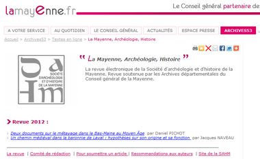 | Reflet de la mission d’émulation de la Société d’Archéologie et d’Histoire et de la Mayenne, la revue Mayenne : Archéologie, Histoire présente pour objectif de favoriser la diffusion des recherches consacrées, de manière exclusive ou non, au département de la Mayenne dans les domaines de l’archéologie, de l’histoire et de l’histoire de l’art. Elle couvre toutes les périodes, depuis la Préhistoire jusqu’à l’Époque contemporaine, la majorité des contributions étant toutefois consacrées à l’Antiquité, au Moyen Âge et à l’Époque moderne. Elle privilégie également les études diachroniques concernant son territoire.