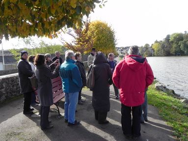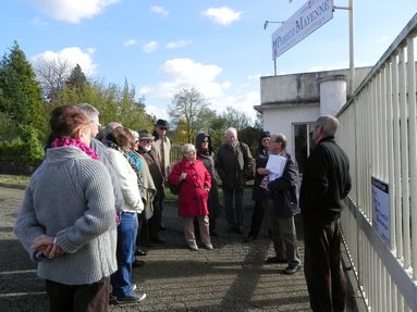 Lors de cette visite, nous nous sommes également attardés sur « le petit patrimoine »: les pompes et fontaines en fonte; les bouquets de forgerons; les vitraux de l’église et son sol en fonte; le tableau de Lionel Royer « La Fête à Port-Brillet en 1900 » et sa petite histoire… |
