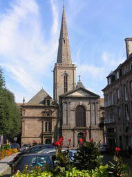 Dédiée à Saint-Vincent, la cathédrale de Saint-Malo a fait également l’objet, au gré de son histoire, de nombreuses campagnes de reconstruction. Si elle conserve un chœur de style gothique hérité des travaux du 13ème siècle, orné néanmoins de vitraux contemporains, l’ensemble de l’édifice présente un caractère hétéroclite provoquée par les importantes destructions occasionnées par le siège anglais de 1695 et par les bombardements alliés de 1944. Le portail du monument subsiste cependant sous la forme élégante d’une mise en œuvre de style néo-classique datée de 1772-1773, faisant la part belle aux références antiques (pilastres, frise dorique) et militaires, avec notamment de surprenantes gargouilles en forme de fûts de canons.