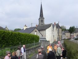 | En quittant la chapelle, le chemin montais passe devant une belle maison du 15e-16e s., qui aurait servi de relais de diligence, pour mener à une source ferrugineuse alimentant le lavoir de la Mère de Dieu.Les traces du chemin montais sont infime entre Grazay et Mayenne et, considérant tout le parcours qui nous attendait, nous nous sommes rendus directement à Saint-Martin de Mayenne, faubourg par lequel le chemin abordait la ville en passant sous une Porte Montaise aujourd’hui disparue. Du parvis de l’église, le panorama sur la ville nous permet d’évoquer la formation de cette dernière à partir de bourgs nés au pied du palais carolingien, construit au début du 10e s. à l’emplacement d’une villa du haut Moyen Âge. Le chemin montais structure cette agglomération qui s’est étendue le long de son parcours, perpendiculairement à la rivière. Aujourd’hui encore, la rue du 130e RI, qui correspond au chemin, est l’axe du centre ancien. Le passage des pèlerins et les craintes qu’ils soulevaient dans la population locale font l’objet d’un arrêt municipal plutôt restrictif de 1668. |