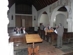 L’église de Saint-Martin-de-Connée est un monument homogène datant pour l’essentiel du 16e s. Elle nous offre la seule représentation de saint Michel conservée sur le parcours : une peinture murale parmi les autres représentations de saints réalisées au 16e s. C’est l’un des ensembles peints les plus importants de la Mayenne.